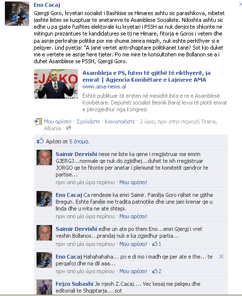 Δείτε τη λέει στη σελίδα του στο facebook o Eno Cacaj για την μη εκλογή Γκόρου.